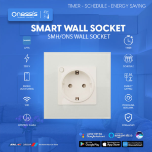 Onassis Smart Wall Socket Wifi adalah soket listrik pintar yang berfungsi sebagai sumber arus listrik yang bisa disetting otomatis menggunakan aplikasi di smartphone (support Android OS & iOS). Bisa on off melalui HP dan bisa dibuat schedule on-off nya sehingga dapat menghemat listrik. Salah satunya otomatis mematikan listrik dispenser saat tidak di rumah.
