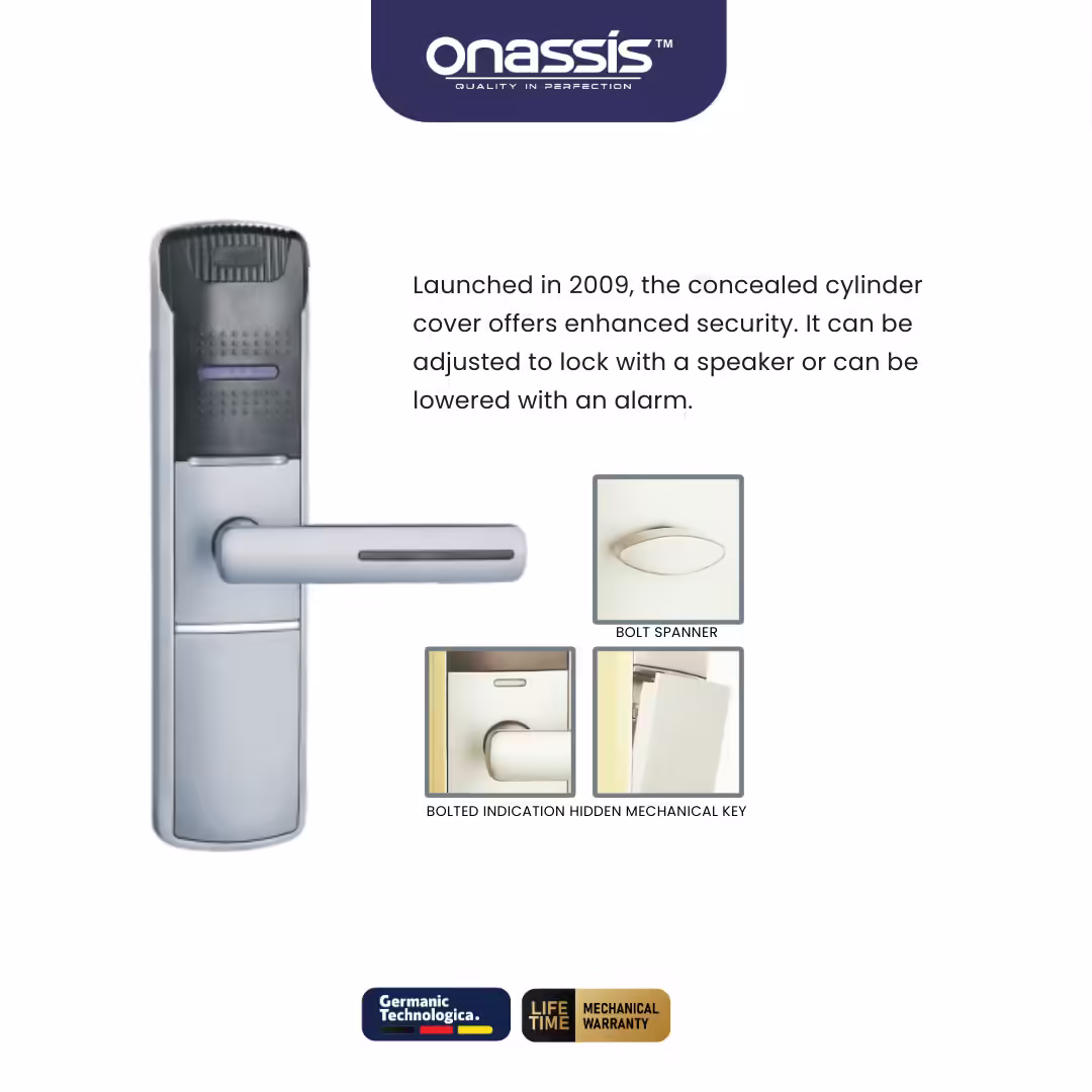 Launched in 2009, the concealed cylinder cover offers enhanced security. It can be adjusted to lock with a speaker or can be lowered with an alarm.