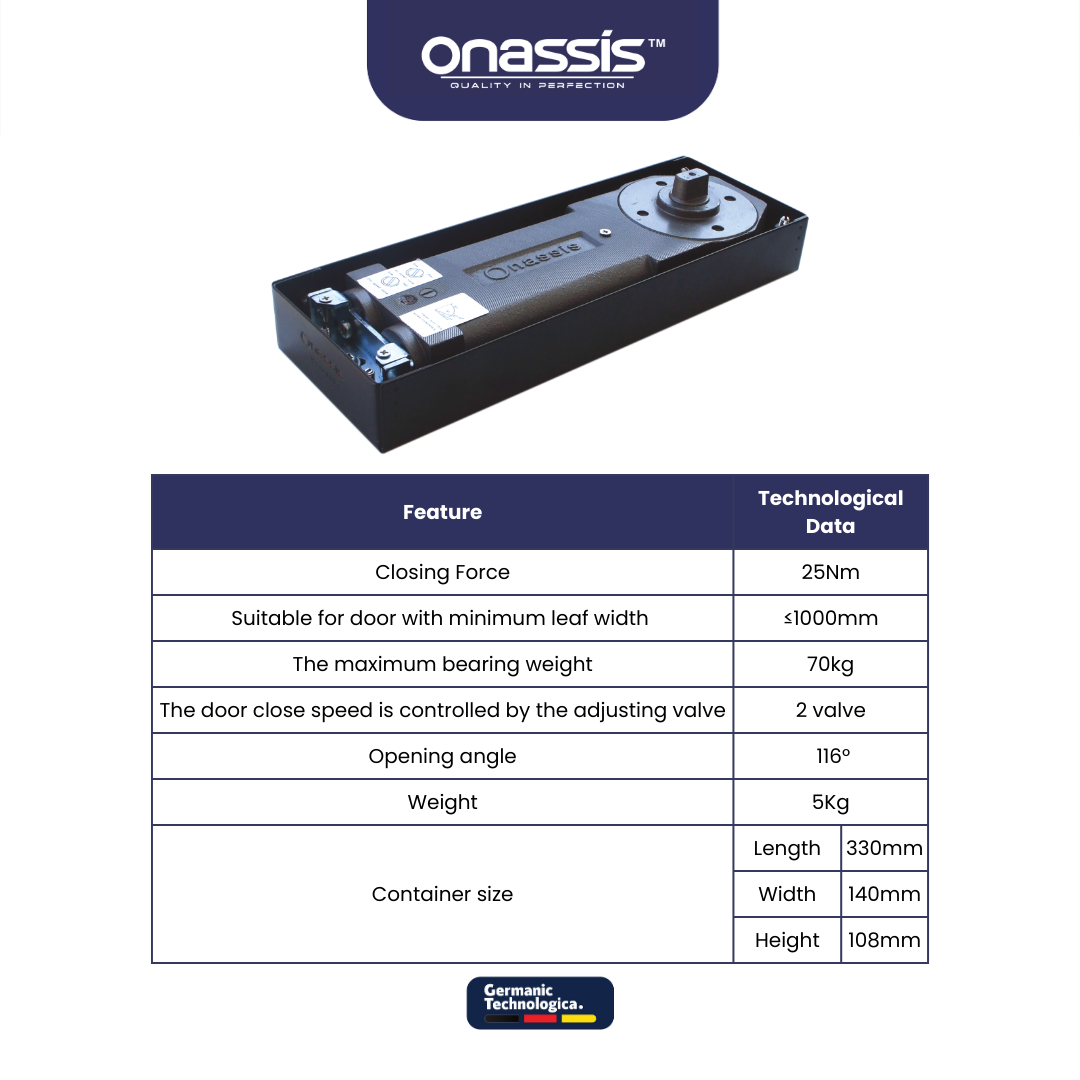 FS/ONS 84 HG adalah engsel lantai berkualitas tinggi dari Onassis, dirancang untuk memberikan performa optimal pada berbagai jenis pintu, termasuk pintu kaca dan kayu. Dengan teknologi canggih dan material unggulan, engsel ini memastikan pintu Anda beroperasi dengan lancar dan aman.