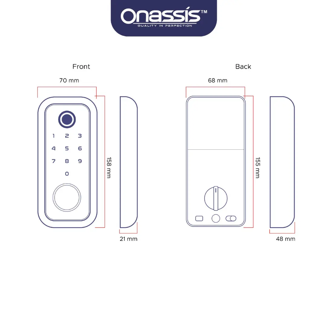 Fingerprint memastikan keamanan tinggi dengan proses identifikasi cepat, akurat dan tidak memerlukan kunci fisik atau kode akses. Anda dapat segera mendaftarakan fingerprint dengan mudah ke smartlock Onassis