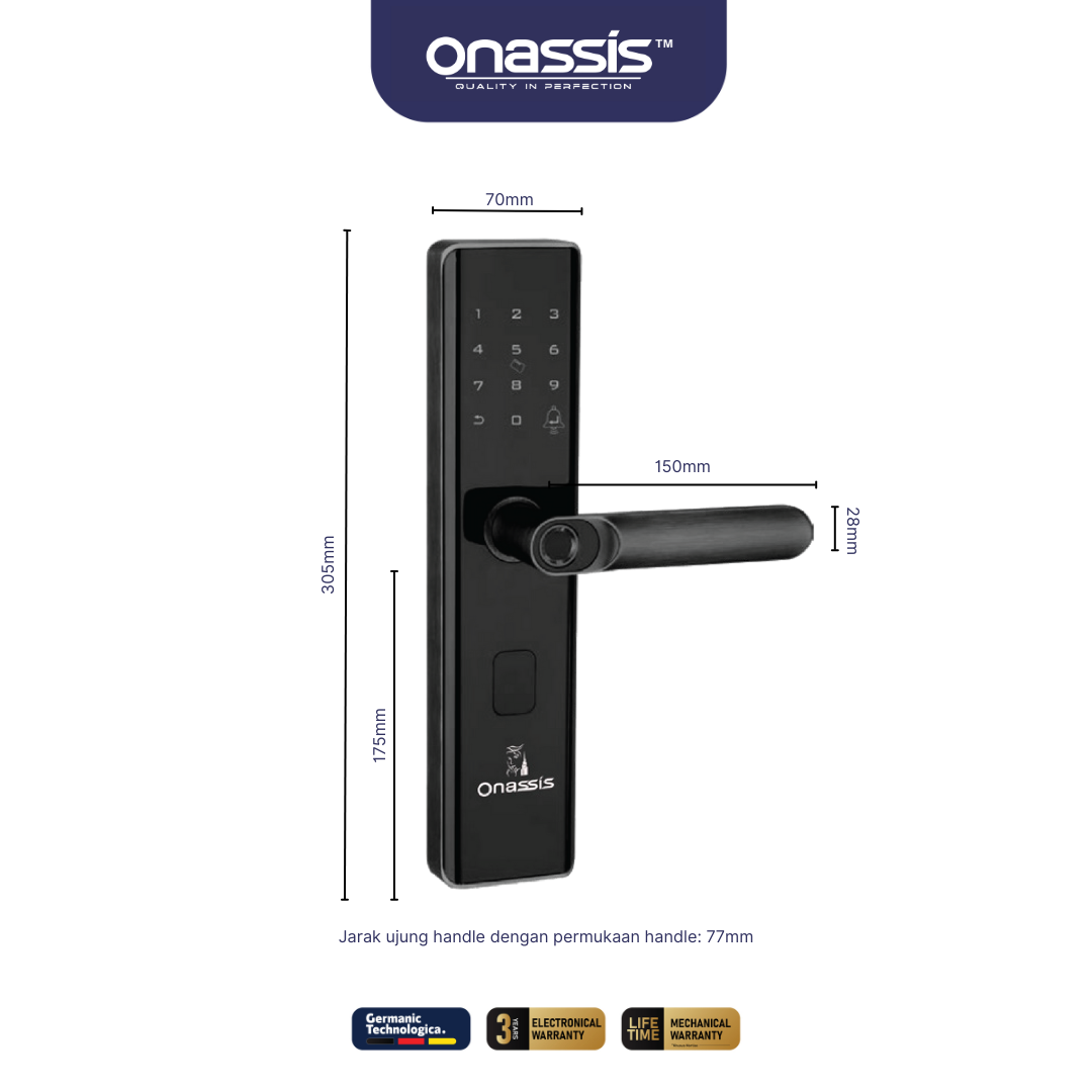 Onassis memberikan 2pcs manual key yang dapat Anda simpan di tempat tersembunyi yang dapat anda gunakan di keadaan darurat tersebut.