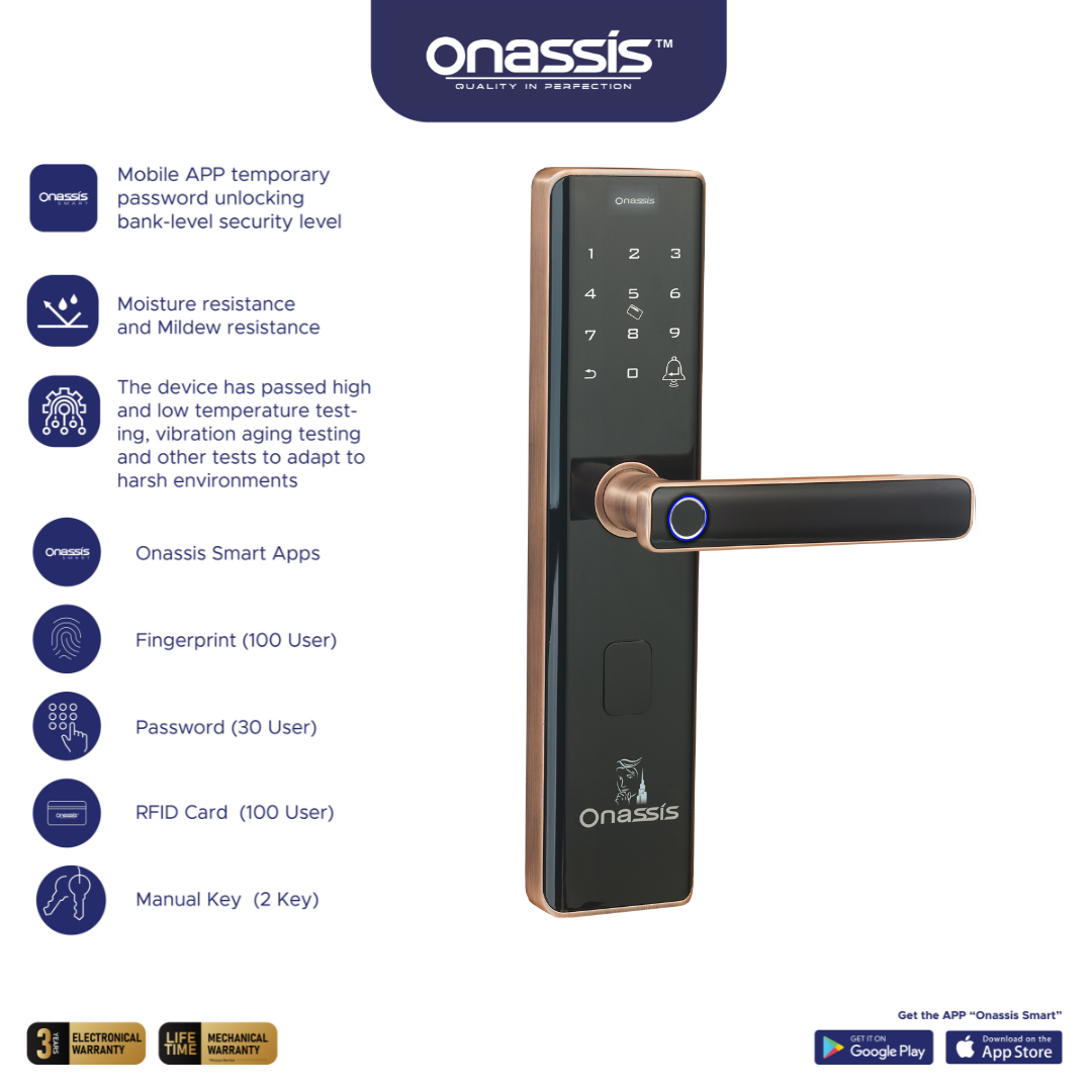 Fingerprint memastikan keamanan tinggi dengan proses identifikasi cepat, akurat dan tidak memerlukan kunci fisik atau kode akses. Anda dapat segera mendaftarakan fingerprint dengan mudah ke smartlock Onassis